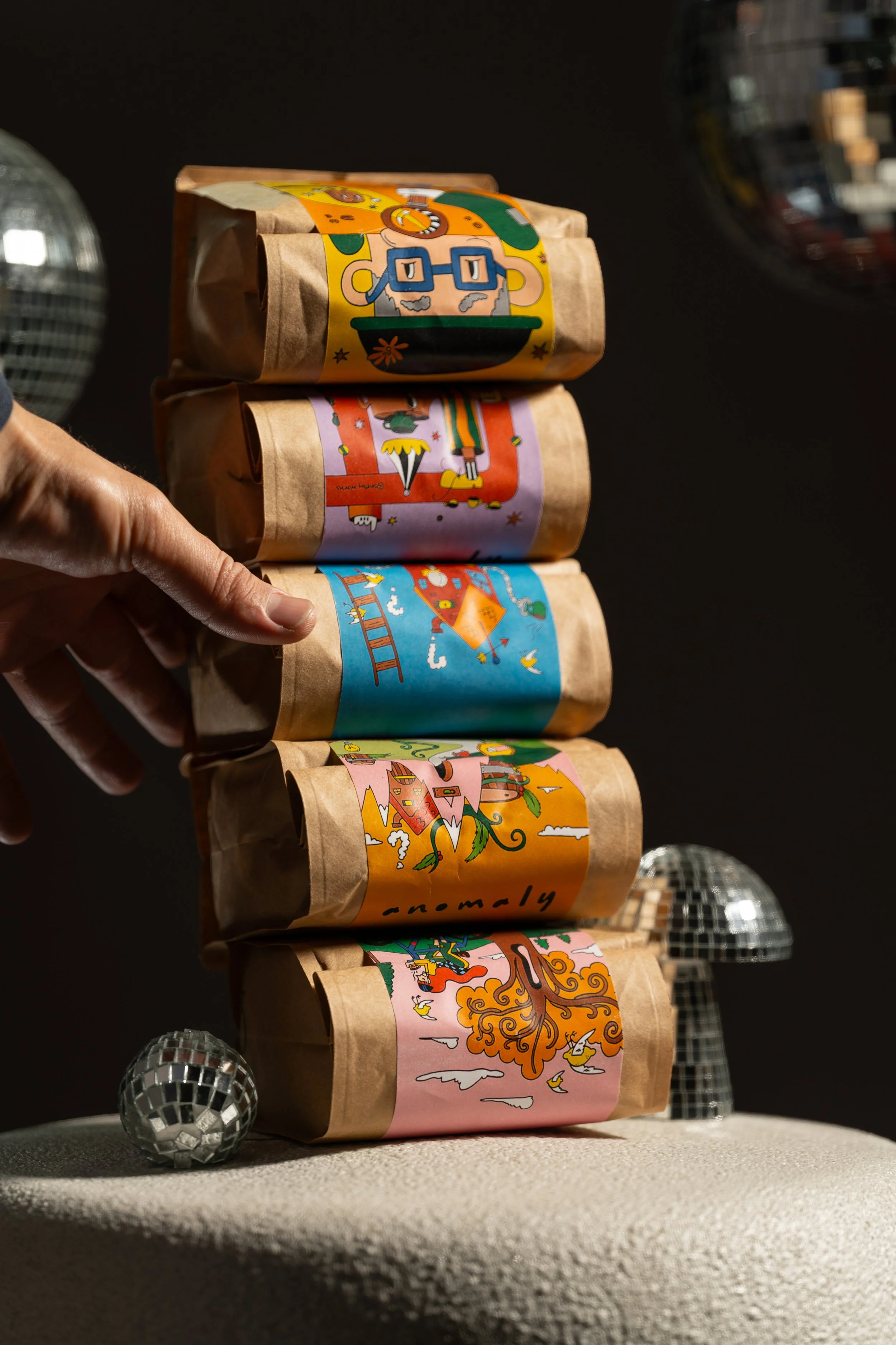 Huge thanks to Anomaly Coffee and the local coffee community for choosing my work to be featured on this special set of coffee bags. These illustrations are meant to spark curiosity with every sip; reflecting the vibrant character of both the packaging and the small-batch, single-origin beans inside. Iām honored to have contributed to a project that celebrates craft, community, and creativity.